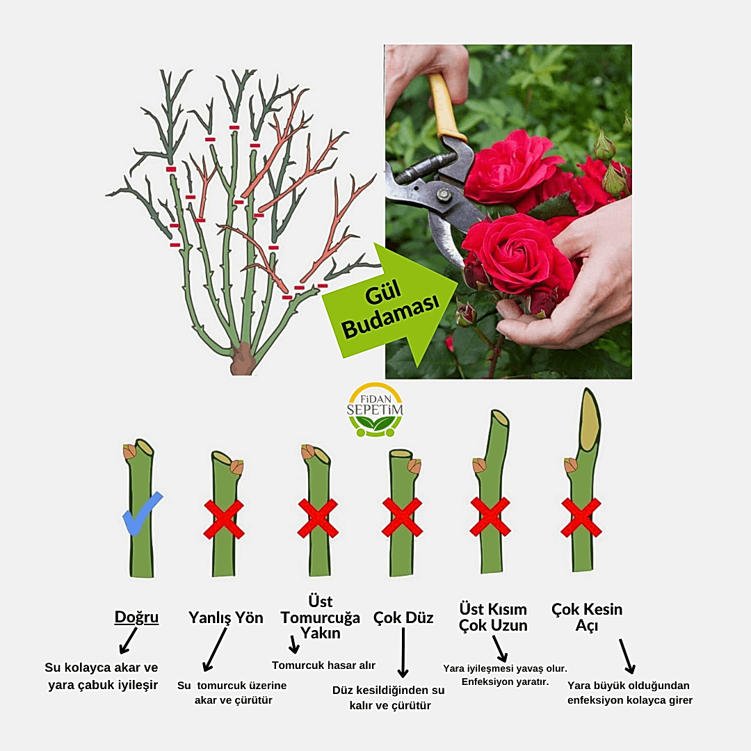 Budama: Gül fidanlarında düzenli budama yapmak, daha iyi bir şekil ve çiçeklenme sağlamak için önemlidir.