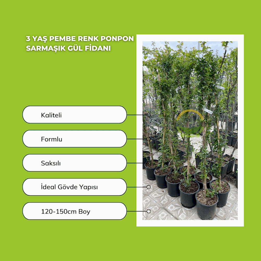 3 Yaş Pembe Renk Ponpon Sarmaşık Gül Fidanı